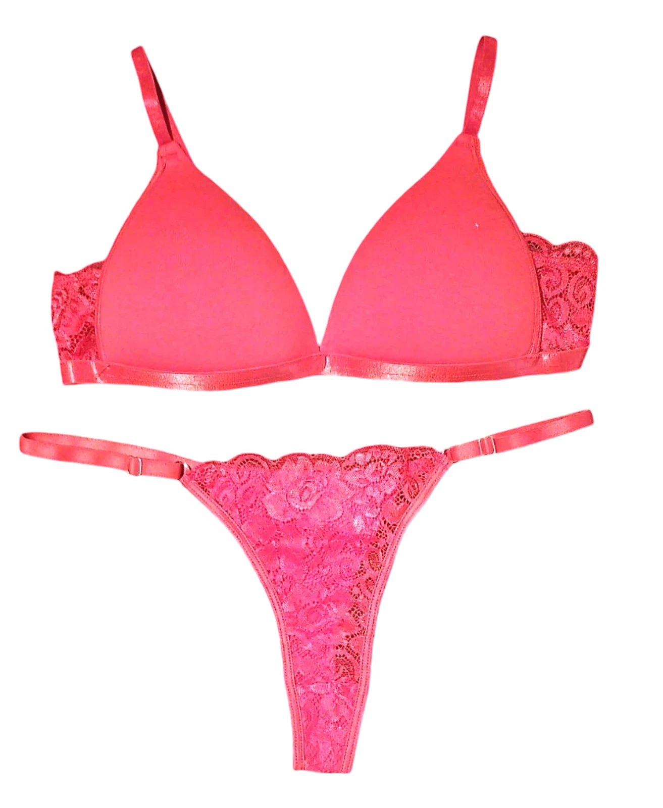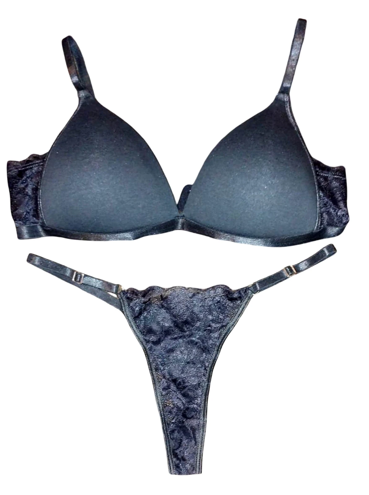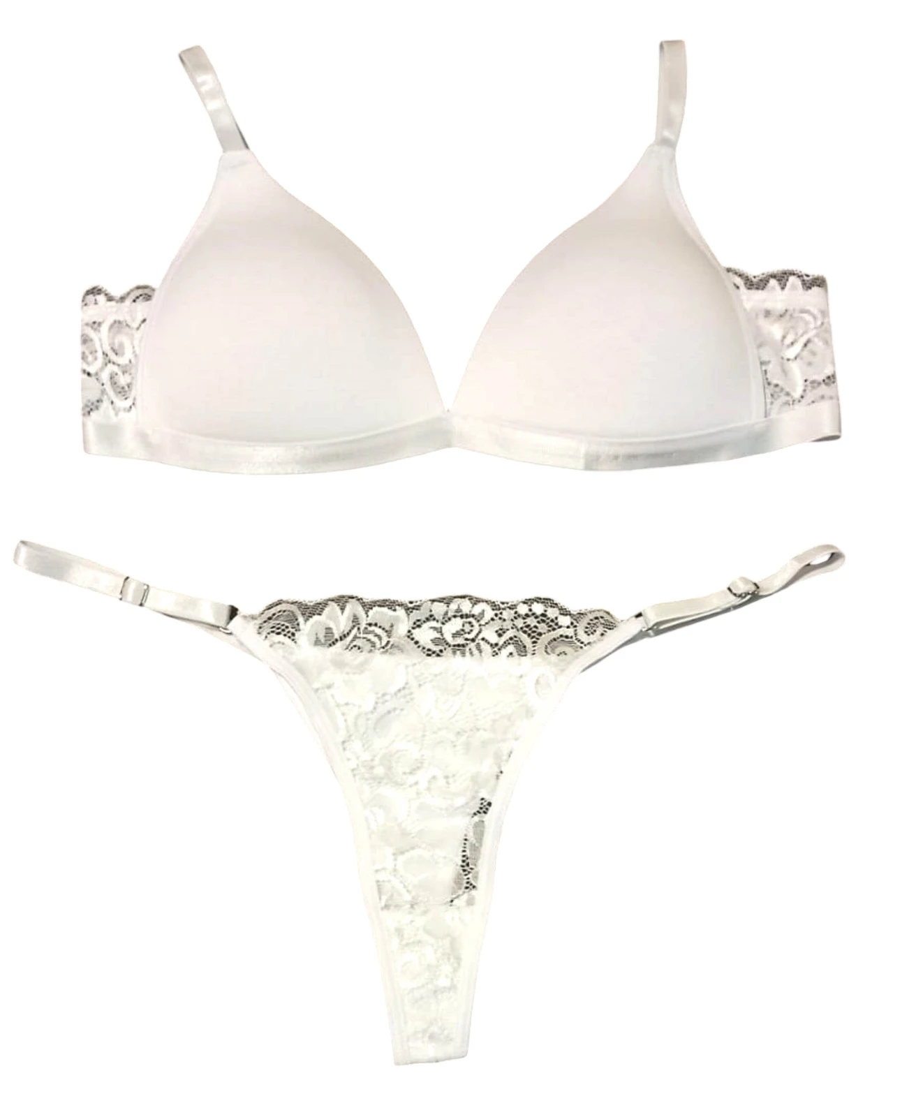 ✨ Conjunto femenino de tanga regulable y corpiño soft con encaje